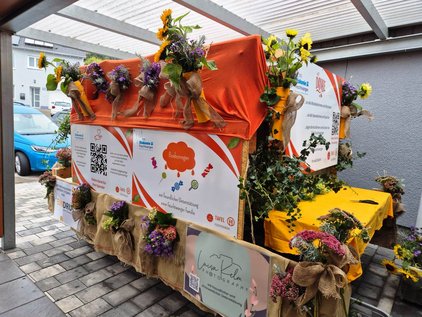 Mit freundlicher Unterstützung von wohlgesonnenen Unternehmern, der deutschen Postcodelotterie und großem Engement des Ehrenamtes. Dadurch war uns das Aufbereiten des Wagens, die Teilnahme mit Marketing- und Spendenaktion und einem Abschluss am Weinstand möglich. Der Bombomregen wurde von einer Feuchtwanger Familie gespendet. Sind Sie 2027 mit dabei, wenn wir anlässlich des 75-jährigen Jubiläums des Diakonischen Werkes Feuchtwangen wieder dabei sind?